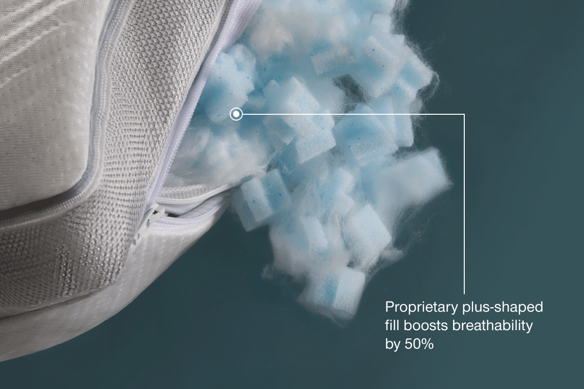 - Oomph™ Cool+ fill: Proprietary cooling gel plus-shaped memory foam and microfiber blend - shaped for 50% more breathability than before